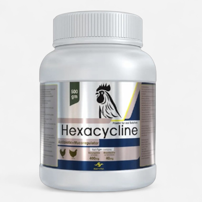 Hexacycline Powder combines Doxycycline and Bromhexine to provide broad-spectrum antibacterial and mucoregulatory effects for respiratory and systemic infections.